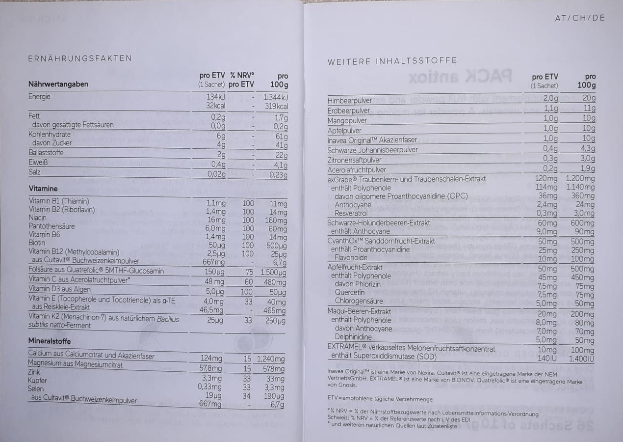 FRESH pack antiox mit wasserlöslichen und fettlöslichen Antioxidantien