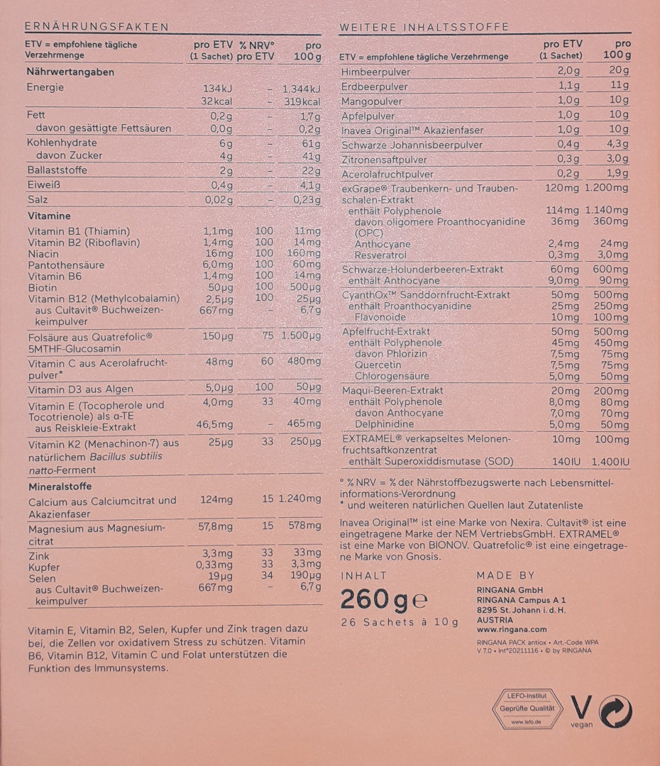 liefert dem Körper Power aus gefriergetrockneten Superfruits.