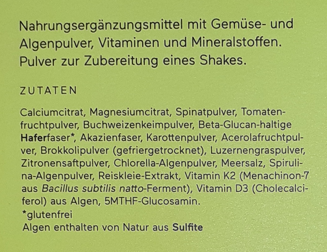 Spinat, Brokkoli, Karotte und Luzernengraspulver