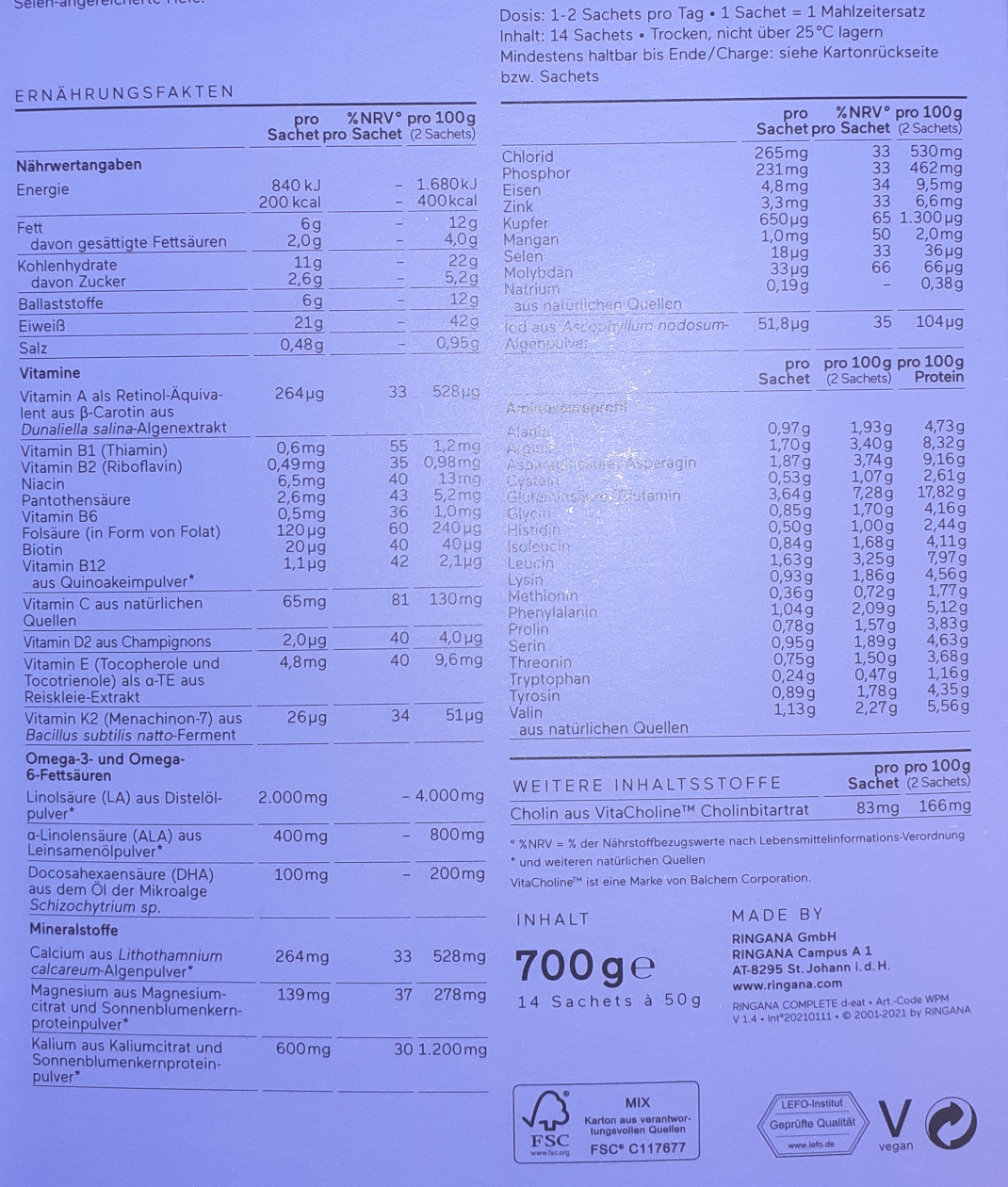 RINGANA COMPLETE ist eine vollwertige Mahlzeit mit natürlichen Nährstoffen,